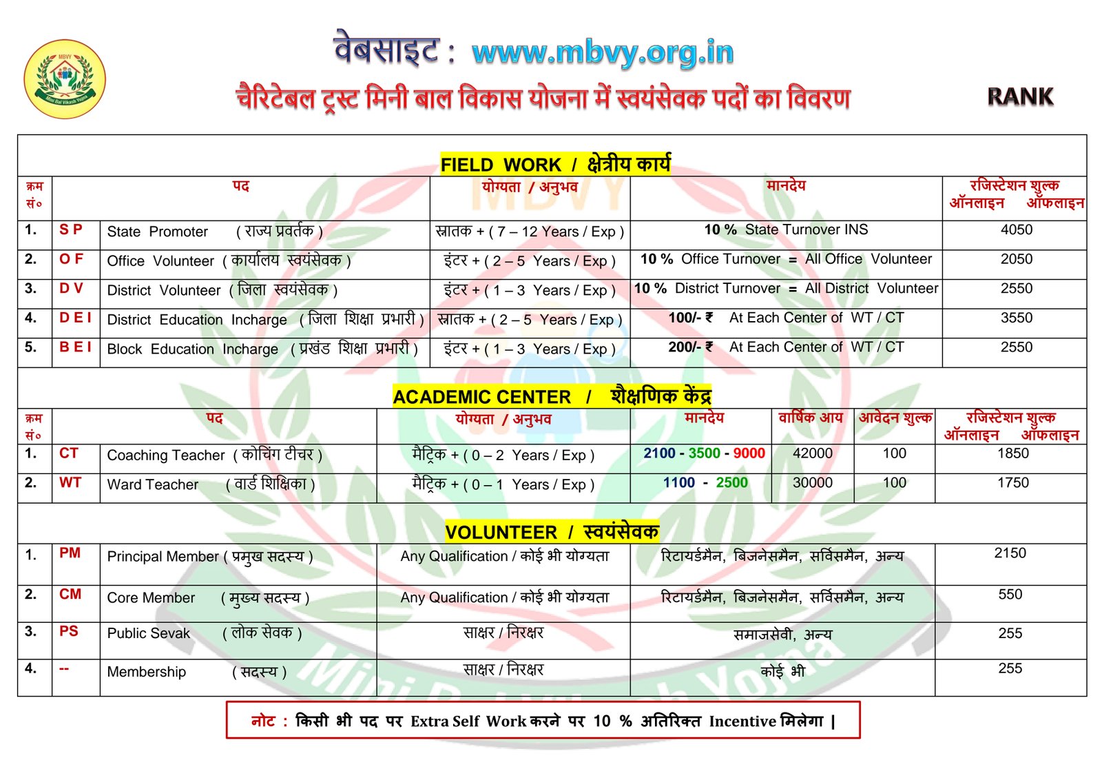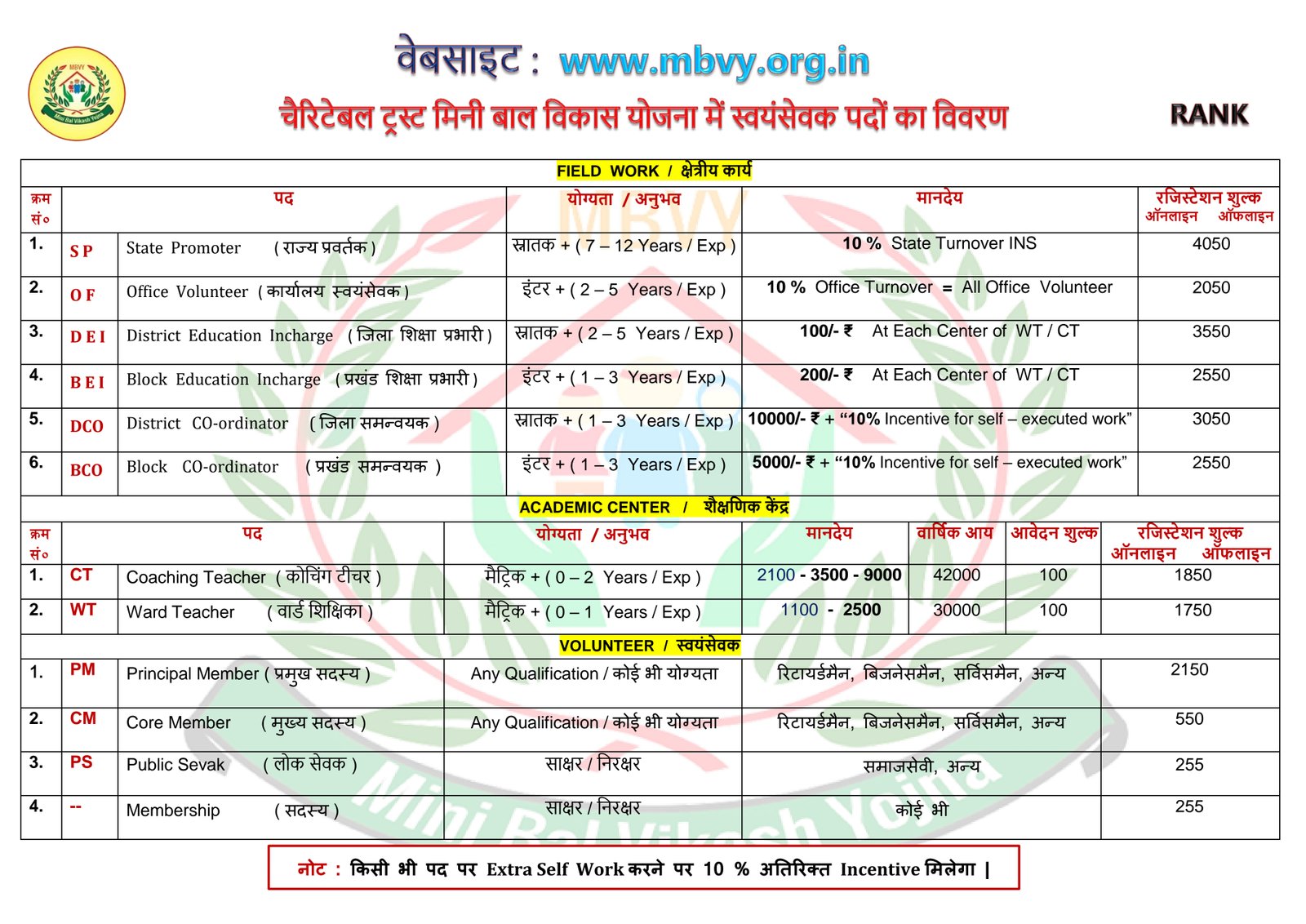 Membership (सदस्यता) - Salary : ₹0-₹0 (Field Work)